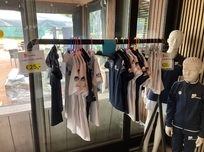 Tip: Momenteel is er tijdelijk teamkleding voor de jeugd te koop in het clubhuis; unieke items voor maar €25 per stuk; af te rekenen achter de bar!